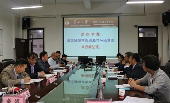 “资环”与“资环”之间的碰撞——记我校资环学院与遵义师院资环学院交流会召开(贵大资环网讯)5月11日下午14时,遵义师范学院(以下简称遵义师院)资源与环境学院一行人来到我院405会议室,展开了一场“资环与资环之间的碰撞”学院交流会。出席本次交流会的领导有我院党委书记滕召华、院长吴攀、副院长周丕康、刘方,院党委副书记徐进,遵义师院资环学院党委书记刘焱、院长高智席、党总支书记张翼及两院的各职能部门负责人及学院各...
