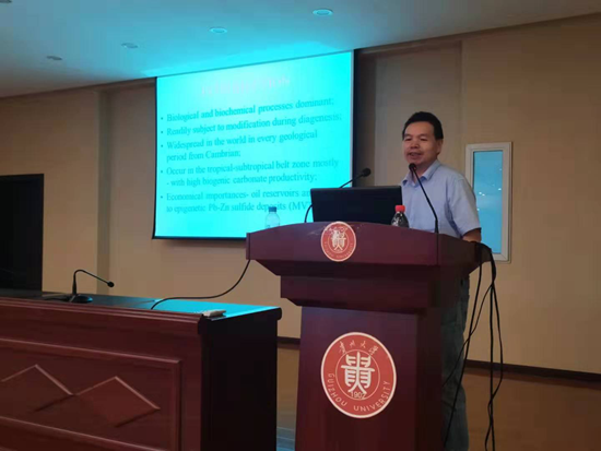 贵大资环网讯(夏鹏 报道|摄影 龙克树)2019年7月15-16日,中国科学院地质与地球物理研究所陈代钊研究员应邀来院436学术报告厅为学院师生讲授《碳酸盐沉积》、《层序地质学》等课程。陈代钊研究员首先介绍了《碳酸盐沉积》课程,重点阐述了碳酸盐矿物特征及识别、灰岩的组成部分、灰岩的类型划分、碳酸盐岩的沉积构造、碳酸盐岩的沉积环境、碳酸盐岩的成岩作用、白云岩化作用等方面的基本研究方法及国际研...