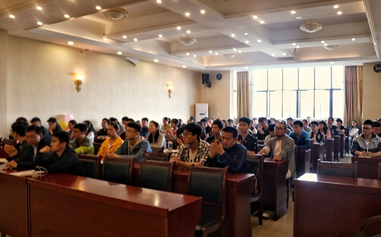 (贵大资环网讯 新闻中心 曾洁报道|摄影 卢利潇)为使资环学院第二十八期积极分子培训工作顺利开展,4月12日中午骄阳正烈,我院资环楼436报告厅因陆陆续续到来的同学们而多了几分热闹,这是前来参加我院第二十八期入党积极分子培训班开班典礼的同学们。12点30分,开班典礼正式开始。出席本场典礼的老师有资环学院党委副书记、分党校副校长徐进老师、党校培训班班主任漆晗老师,90余名入党积极分子培训班学员参加。