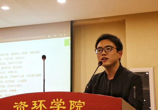 此环节结束后,王帅老师、郭欣欣学姐和张春江学长都依次进行了点评。郭欣欣学姐表示对我院诗词大赛的希冀,她希望资环学院诗词大赛越来越成熟,越办越好,在学院里产生好的反映,大家都积极参与到其中来。其后徐进书记和曹贞贞老师也进行了发言,徐进书记表示,很荣幸两届比赛都邀请到了王老师,此次诗词大赛选手的表现相对前一年的精彩程度各有千秋,并且提出了在今后的工作中,不仅要有一定的工科专业基础,同时还要具有一定的文科功底,他说通过诗词大赛希望能激起大家对古典文学的兴趣爱好,也能把自身的基础知识打牢。