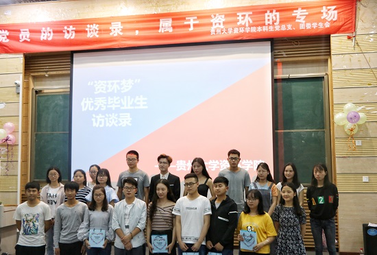 (贵大资环网讯)5月26日下午,我院14级优秀毕业生党员代表经验分享会在西区圆形报告厅召开,我院各学生组织、社团主要负责人、本科生各党支部书记参加活动。数百名资环学子齐聚一堂,聆听了一场精彩的经验分享。本次经验分享会的主持人由胡进、潘宇航两位同学担任。