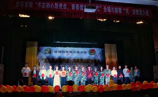 (资环新闻网讯)5月27日下午14:30,我院在贵州大学北区大礼堂开展“不忘初心跟党走,青春建功新时代”合唱比赛暨“五四”表彰大会。出席本次活动的嘉宾有资环学院党委书记滕召华书记,资环学院学生科刘红迎老师、陈成老师、漆晗老师;资环学院班主任代表银正彤、周向阳老师。特邀评委嘉宾有音乐学院研究生苏杭、王战、杨力。