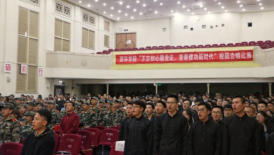 在主持人王娴婕和罗艾晖宣读比赛评分规则后,资勘161班同学饱含深情的歌唱《贵州大学校歌》和《我和我的祖国》。随后,《我爱你中国》、《军中绿花》、《保卫黄河》、《我的中国心》、《红旗飘飘》等一首首熟悉的红歌,嘹亮的歌声表达出同学们对党和国家的热情,唱出每一位新时代青年学子的赤子之心。整个大礼堂被一首首满含深情的歌声环绕着。合唱比赛结束后,评委老师分别从指挥服装、挥拍情况、合唱伴奏、还有合唱队伍的表情等方面做出点评,并指出个别班级现场合唱的缺点和优点。