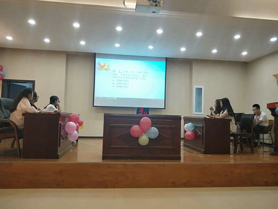 紧接着进入第二轮抢答题环节,首先由工作人员示范抢答器的正确使用方法以及讲解抢答规则。每一轮抽取三支队伍进行抢答。在该环节中7号队伍和15号队伍以绝对的抢答速度获得小组全部题目的抢答权。抢答环节之后,进行加时风险题竞赛,通过层层角逐。获得本次比赛的一等奖队伍是来自环科党支部的7号队伍,此外,还有八支队伍获得二等奖、三等奖和优秀奖。