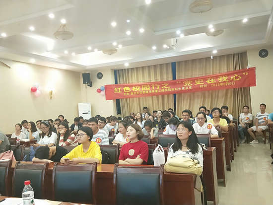 资环新闻网讯(新闻中心 张忠美 报道/摄影 陈丽)为提高同学们对中国共产党历史的了解,加强对党的认识,牢记党的光辉历程,坚定跟党走的信念。资环学院本科生党总支于6月6日晚7点,在资环学院436学术报告厅举行红色校园之“党史在我心”知识竞答活动。本科生党总支书记漆晗老师、资环学院本科生各党支部书记、来自我院各支部的21支参选队伍、学院各支部代表100余人参加本次活动。活动由勘技党支部孟祖勇同学主持。