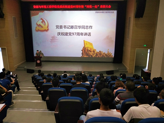 (资环网讯 记者 张忠美/摄影 曹梦瑶)7月6号下午,我院在西区图书馆多功能报告厅开展资环学院党委庆祝建党97周年暨“两优一先”表彰大会。我院党委书记滕召华、院长吴攀、副院长周丕康、副院长刘方及学院教师、学院和喀斯特实验室全体党员参加。会议由学生科科长刘红迎主持。
