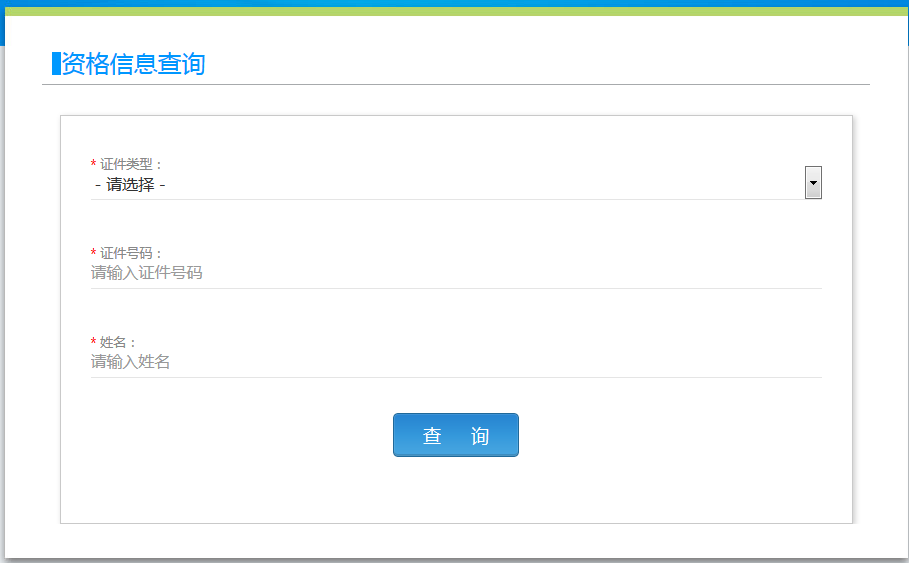进入资格查询页面,输入考生的姓名、证件号、选择证件类型点击“查询”按钮