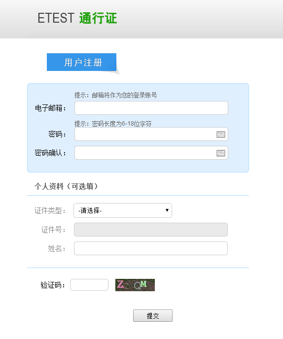 http://cet-bm.neea.edu.cn/登录网站,没有ETEST通行证(如果有NCRE、MHK等可以通用),需要先注册