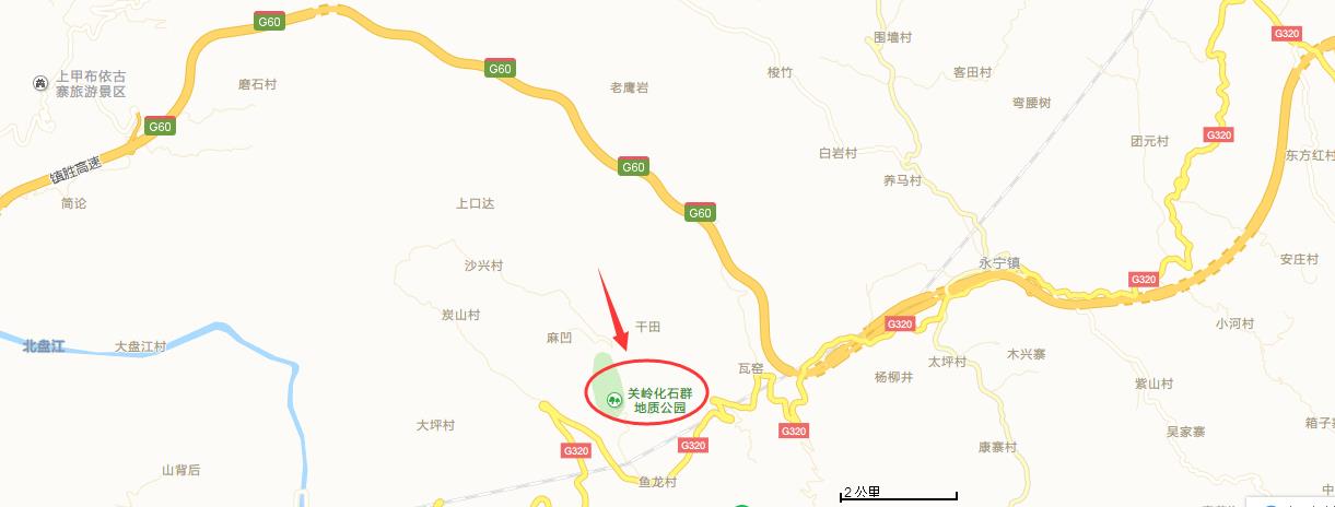 关岭化石群国家地质公园交通位置图