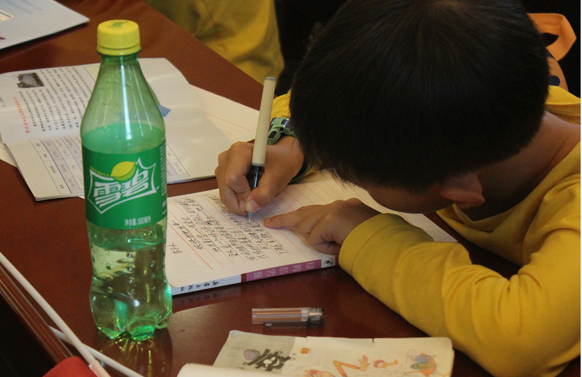 认真写心得的样子