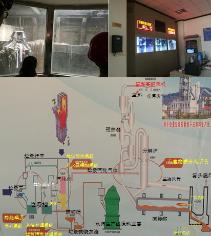 图3 水泥窑协同处理生活垃圾中控室以及生活垃圾处理系统工艺流程图