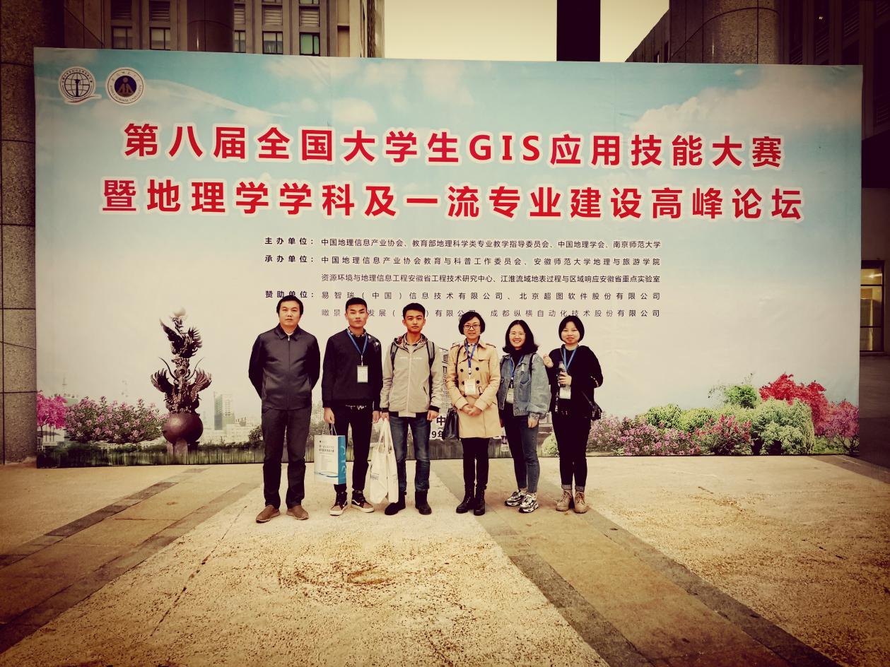11月25日,由安徽师范大学地理与旅游学院承办的第八届全国大学生GIS应用技能大赛圆满结束。我校yl6809永利官网副教授刘沛、周涌和吴琳娜老师指导的代表队荣获二等奖。参赛小组由yl6809永利官网地理信息科学专业16级吕川、祝天雷、曾洁和唐丽丽四位同学组成。