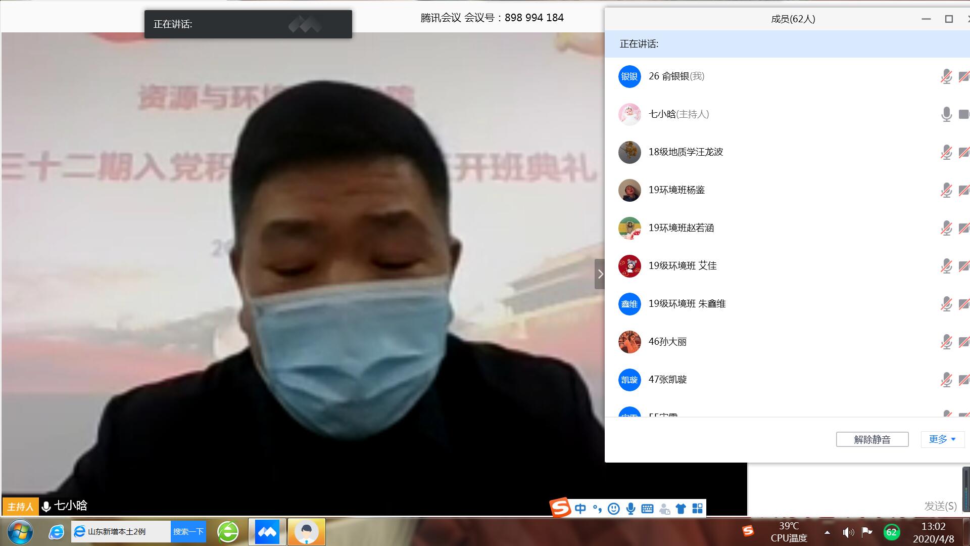 为确保我院入党积极分子培养、教育和考察工作的顺利开展,4月8日中午12时,我院第三十二期入党积极分子培训班举行线上开班仪式。学院党委书记、分党校校长滕召华,学院专职组织委员綦雅老师,本科生党总支书记漆晗老师出席开班典礼,积极分子班全体学员参加,开班仪式由漆晗老师主持。