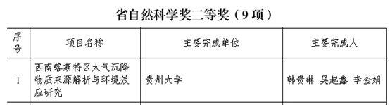 祝贺我院韩贵琳、吴起鑫、李金娟团队项目“西南喀斯特区大气沉降物质来源解析与环境效应研究”荣获省自然科学奖二等奖。