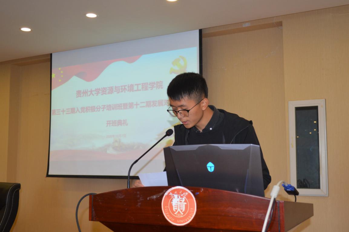 (贵大资环网讯 杨金花 报道|宁芊芊 摄影)10月7日中午12时,我院第三十三期入党积极分子培训班暨第十二期发展对象培训班开班典礼在资环楼436报告厅举行,资环学院党委书记、分党校校长滕召华,培训班班主任漆晗老师以及各班培训学员到场参加,开班典礼由发展对象培训班班长王合龙同学主持。