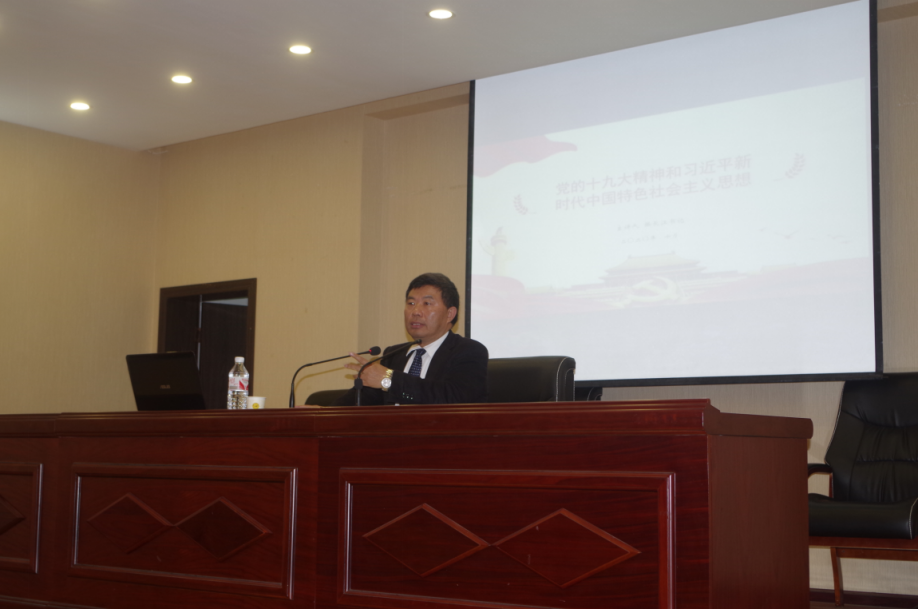 随后,骆长江书记带领全体学员学习了十九大精神和习近平新时代中国特色社会主义思想,他强调了十九大精神的重要性和必要性以及习近平新时代中国特色社会主义思想的理论意义、现实意义、历史意义。并指出,党的十九大是中国特色社会主义进入新时代,全面建成小康社会进入决胜阶段召开的一次重大会议,希望同学们能够领会十九大的精神要义,继承和发展新时代特色社会主义精神。最后,他生动细致的讲述了习近平新时代中国特色社会主义思想的定义以及核心内容,增进了同学们对党的认识和领悟。