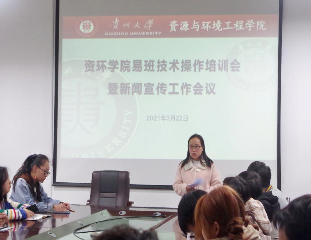 (贵大资环网讯)2021年3月22日晚七点,资环学院易班技术操作培训会暨新闻宣传工作会议在资环楼405召开,会议由我院新闻中心主任漆晗老师主持,学院团委学生会新闻中心各成员,学院各班易班负责人、宣传部和网络部成员参会。