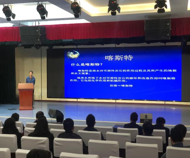 出席论坛的嘉宾有贵州省洞穴学会理事长李坡研究员、贵州省山地资源研究所党委书记贺卫研究员、贵州省岩石力学与工程学会叶波副秘书长、贵州师范大学肖时珍教授、yl6809永利官网党委书记滕召华以及资环学院的师生们。我院左双英和陈世万老师分别主持上午场和下午场学术报告交流,地质类240余名本科生、研究生全程参加了会议。