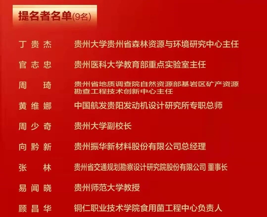 为表彰在脱贫攻坚、疫情防控、经济社会高质量发展等重点任务和重大工作中有突出贡献的专家学者,在全社会营造识才、爱才、敬才、用才的良好环境,进一步激发全省广大人才积极投身经济社会高质量发展的主动性创造性,省委、省政府决定,授予欧阳自远等4人“贵州杰出人才奖”;授予丁贵杰等9人“贵州杰出人才奖”提名奖。我院环境科学与工程系教师周少奇教授获得提名奖。