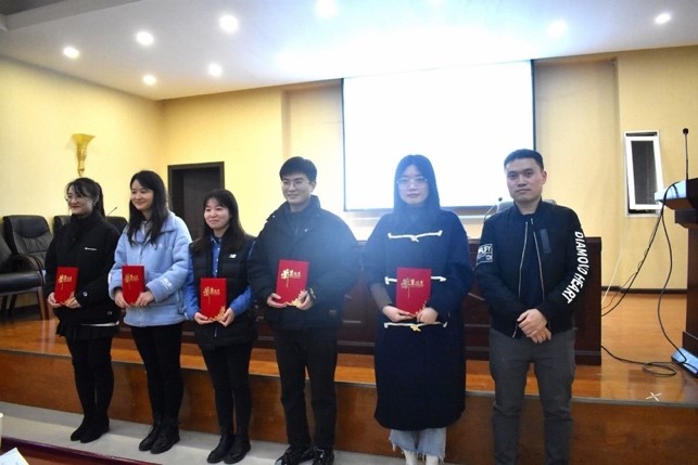 汇报结束后,由资环学院徐进副书记致闭幕词,他表示感谢各位专家评委、各位老师和同学们的辛苦付出,特别感谢贵州楚云环保科技有限公司对此次年会奖品赞助以及大力支持!最后由徐进副书记及专家为本次获奖的18位同学颁奖并合影留念。