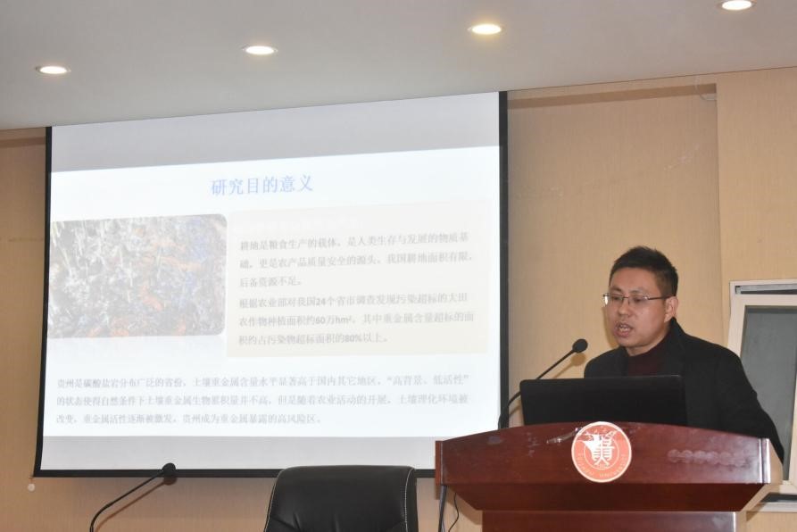 张珍明研究员汇报的题目:“水稻-油菜轮作对喀斯特耕地土壤重金属迁移转化及其活性的影响”。