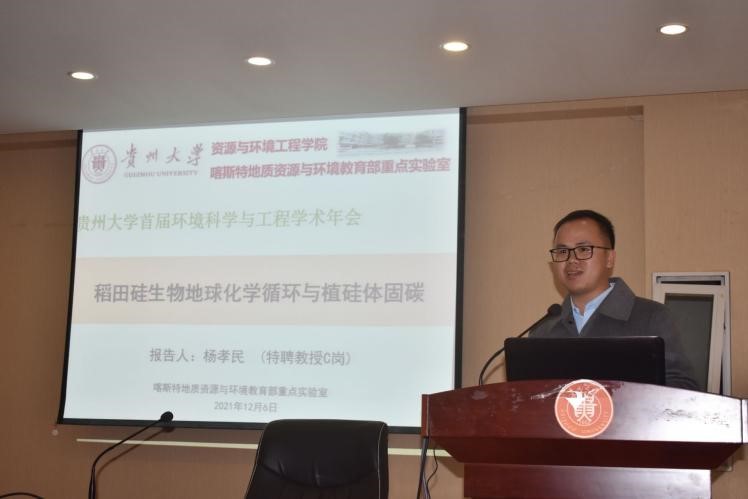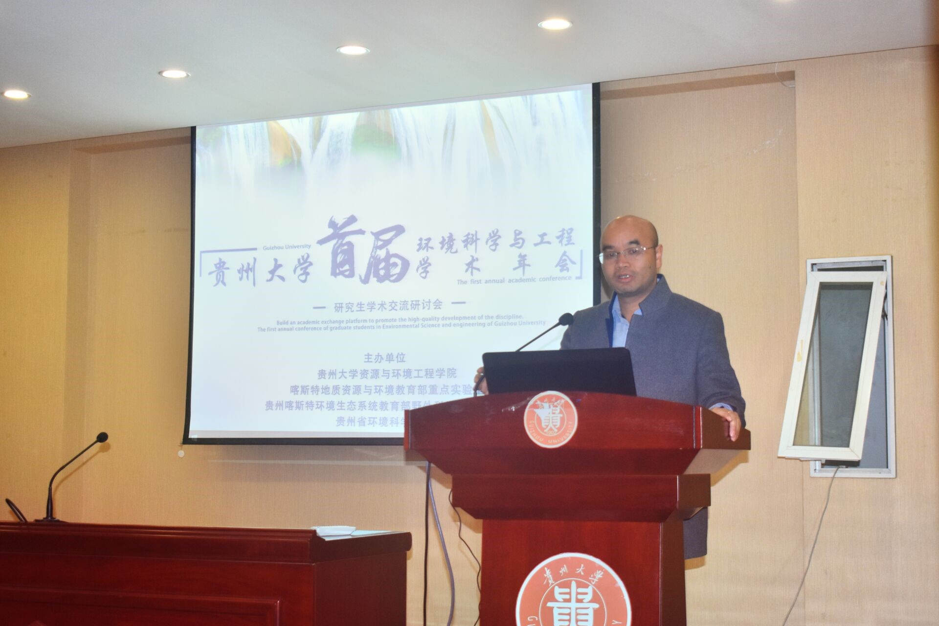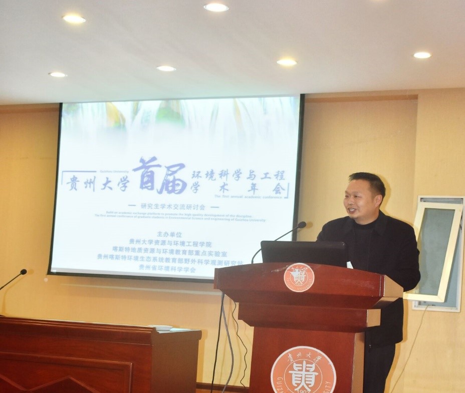 2021年12月6日上午9:00,首届贵州大学环境科学与工程研究生学术年会开幕式及大会报告在yl6809永利官网436报告厅成功举行。本届年会以“共搭学术交流平台,促进学科高质量发展”为主题,围绕环境科学与工程学科特色方向以及前沿方向等进行专题研讨。参与此次年会的嘉宾有:贵州大学副校长吴攀教授,资环学院党委书记滕召华,资环学院党委副书记徐进,资环学院副院长刘芳教授;贵州省环境科学学会李啓泰研究员,贵州省环境科学学会白玉莲,贵州省环境科学学会吴寅;贵州省气象学会秘书长胡跃文,贵州楚云环保科技有限公司副总经理罗皓。本次年会邀请报告汇报人为:李啓泰、张珍明、杨孝民三位老师。年会由环境科学与工程一级学科负责人刘宝军老师主持。