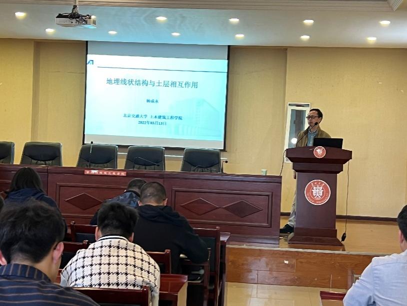 2022年3月13日上午9:30,我院优秀校友、北京交通大学杨成永教授受邀来学院,作了以“地埋线状结构与土层相互作用”为题的精彩学术报告。周丕康副院长、地质工程系左双英老师、史文兵老师、陈世万老师参加了本次报告会。