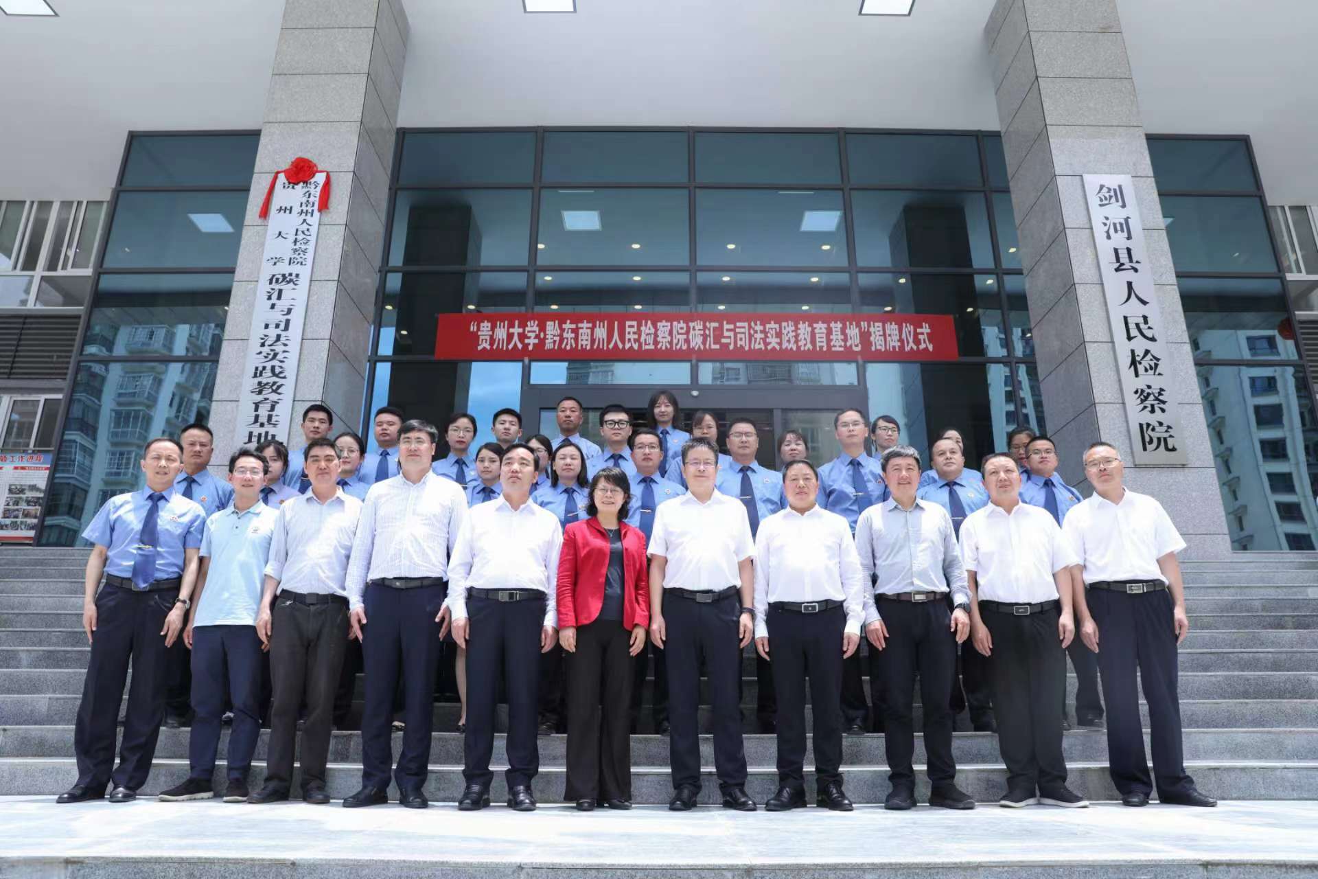 2022年6月14日,“贵州大学·黔东南州人民检察院碳汇与司法实践教育基地”在剑河县人民检察院揭牌成立,该基地是贵州省首个检校合作建立的碳汇与司法实践教育基地。黔东南州人民检察院党组书记、检察长金亦贱,yl6809永利官网党委书记李波、副院长付勇、环境系系主任李江,黔东南州生态环境局党委书记、局长袁刚,剑河县委书记袁尚凯,县委副书记、县长杨胜朝等出席活动。