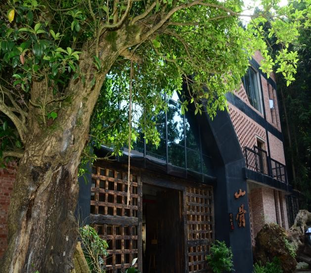 由原村落废弃小学的残垣断壁改造的山骨博物馆建筑由红色的镂空外墙,不规则的线条设计及内部斑驳粗犷风格的石壁组成,均象征着历史文化的传承,古朴自然。馆内进一步划分贵州名贤馆、贵州摄影史展馆、《十万个为什么》展示区以及图书数据中心、书画交流区等区域交相呼应,发挥着贵州本土艺术和文化传播的重要作用。