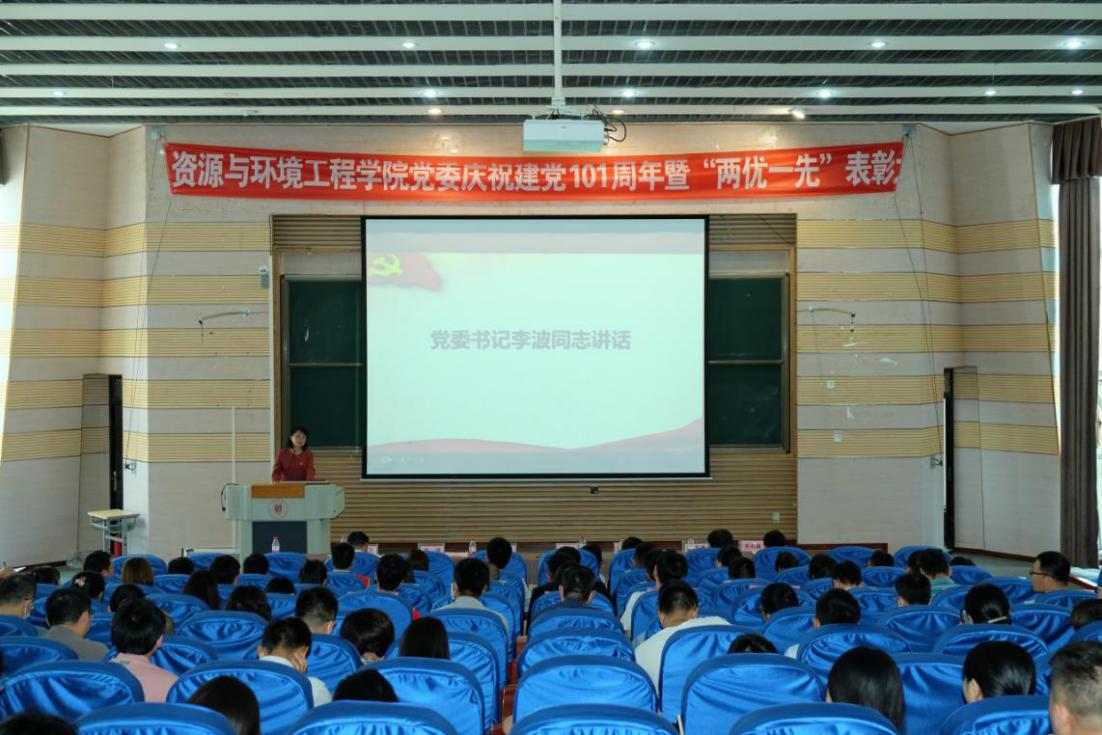 副院长刘方宣读资环学院“两优一先”表彰决定环境工程专业本科生党支部和硕士研究生第三党支部被授予先进基层党组织称号,罗雪等18名同志被授予优秀共产党员称号,陈世万11名同志被授予优秀党务工作者称号。