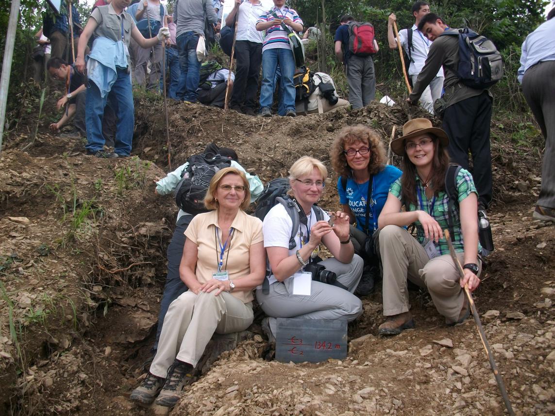 图3 2012年6月,第17届国际寒武系内部再划分国际会议代表参观丹寨南皋三湾剖面,在第5阶底界碑处留影(左一为时任国际地层委员会寒武系分会副主席、瑞典乌普萨拉大学Moezydlowska-Vidal教授;左二现为寒武系分会秘书长、波兰华沙大学Linda教授)