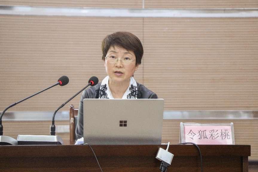 令狐彩桃教授以《坚持不懈用习近平新时代中国特色社会主义思想凝心铸魂》为主题作报告,从学思想、强党性、重实践、建新功四个方面展开,强调深刻学习领会习近平新时代中国特色社会主义思想的重要意义,号召在座同志们用习近平新时代中国特色社会主义思想改造世界观、人生观、价值观,践行习近平新时代中国特色社会主义思想的内在要求,用习近平新时代中国特色社会主义思想推动发展。