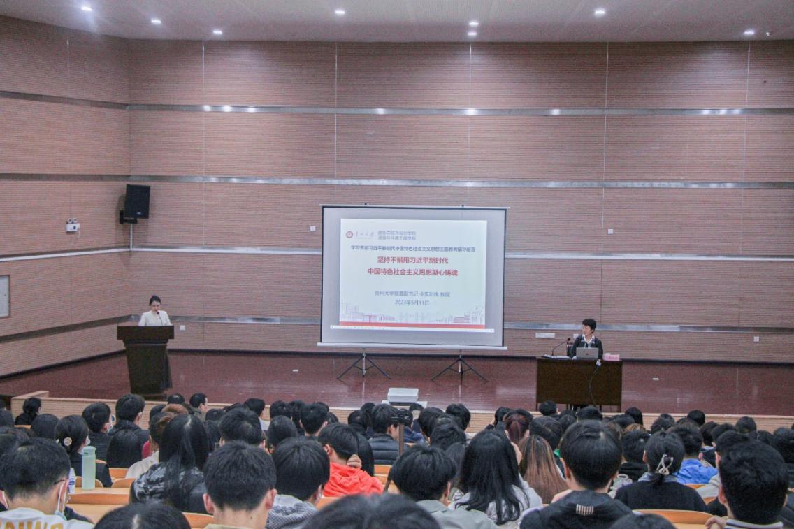 2023年5月11日,贵州大学校党委副书记令狐彩桃教授在建规学院217报告厅主持开展学习贯彻习近平新时代中国特色社会主义思想主题教育辅导报告,校团委、校党委学工部、校党委研工部、招就处、校工会以及yl6809永利官网和建筑与城市规划学院党员领导干部、预备党员及入党积极分子参加。