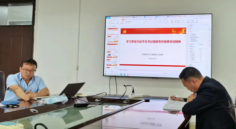 会上,党支部书记王兵同志带领大家重温习近平总书记视察贵州重要讲话精神和对贵州工作重要指示批示精神,学习内容包括:(1)2011年5月8日-11日时任国家副主席习近平同志视察贵州,5月9日到贵州大学参加“溪山论道”读书会;(2)2014年全国“两会”时参加贵州代表团审议;(3)2015年6月16-18日,就做好扶贫开发工作、谋划好“十三五”时期经济社会发展到贵州调研;(3)2017年10月18日,在贵州参选党的十九大代表、参加贵州代表团讨论并发表重要讲话;(4)2021年2月3日至5日春节前夕,习近平总书记再次亲临贵州视察调研并发表重要讲话。
