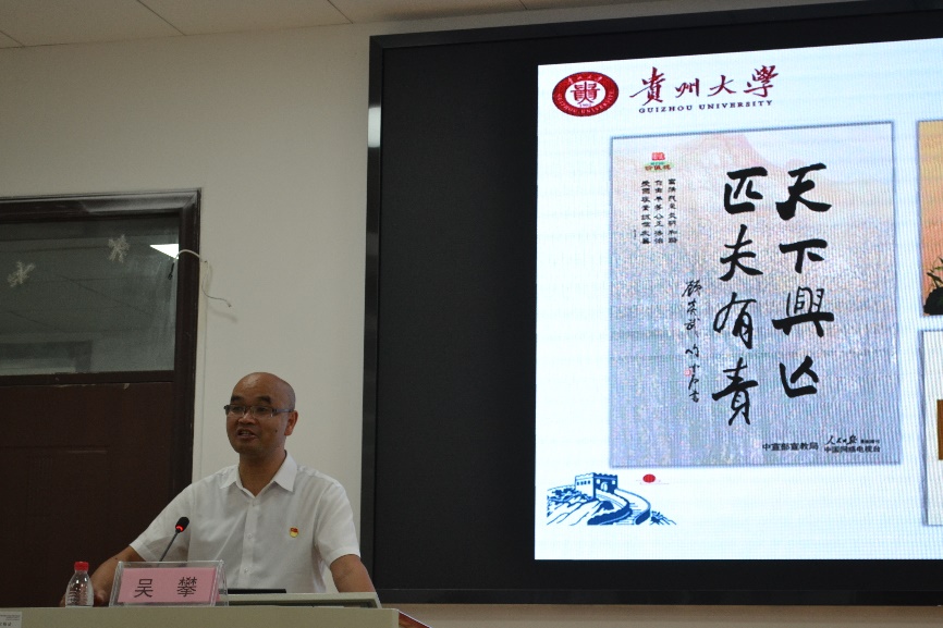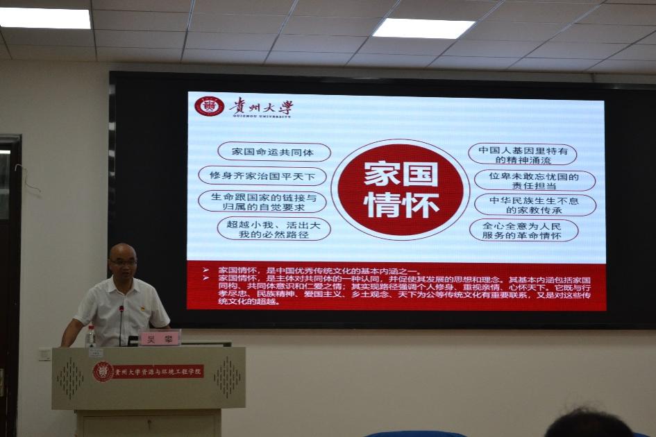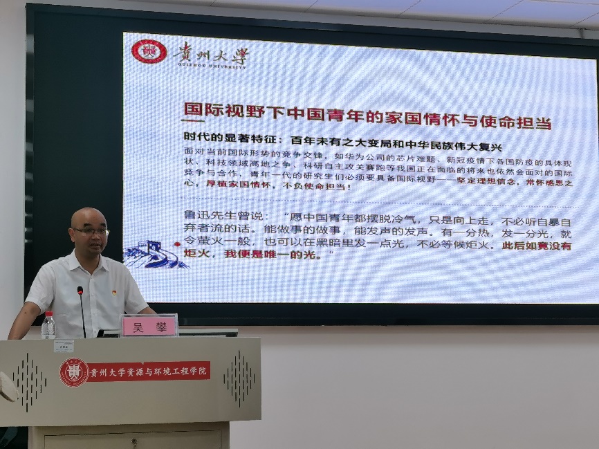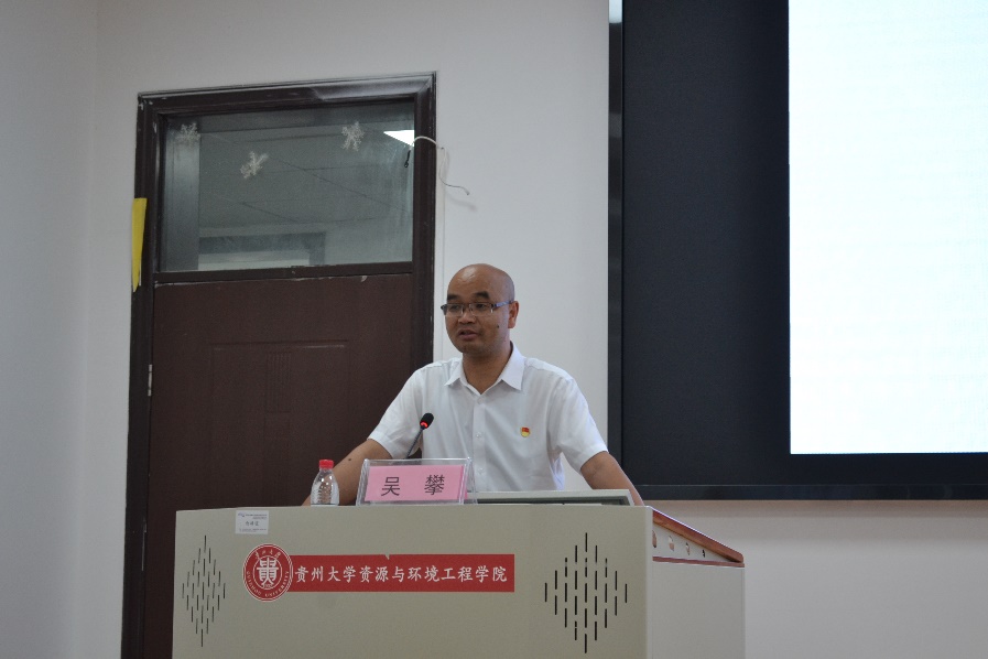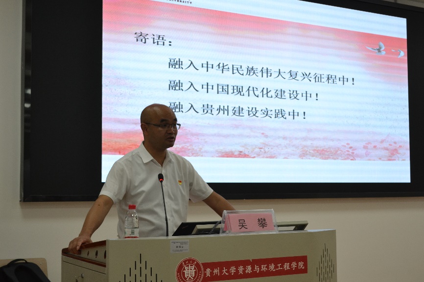 为进一步推进资环学院广大学子思想政治建设,推动学生德智体美劳全面发展。2023年6月30日,贵州大学党委常委、副校长吴攀教授在yl6809永利官网521会议室以“厚植家国情怀、强化责任担当”为主题向yl6809永利官网广大学生党员开展思想政治教育。