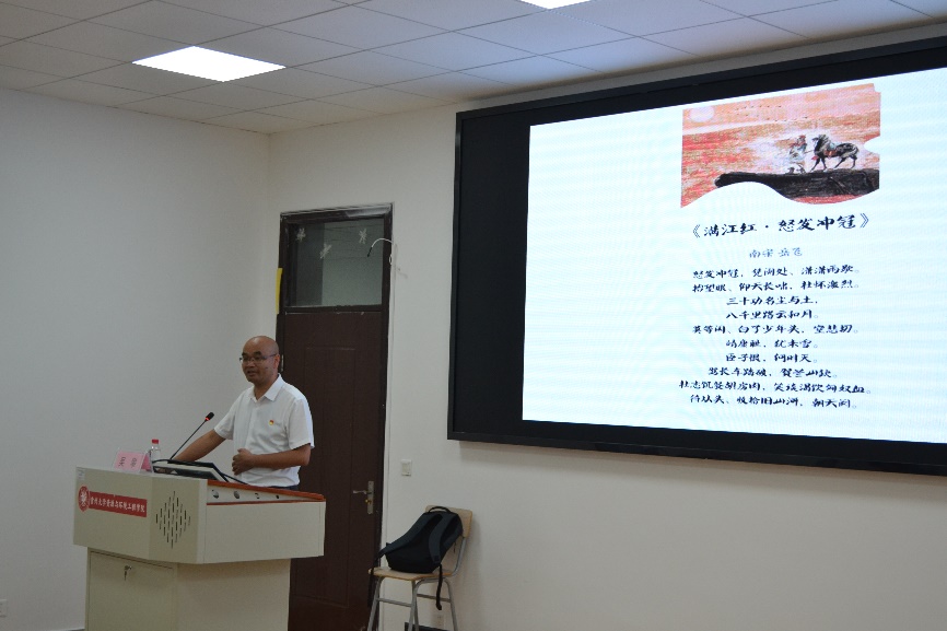 临近结束,吴攀副校长还带领大家朗诵岳飞的《满江红》,吴校说,在人生的低谷时期,多多诵读这些蕴含家国情怀的诗歌,它们能振奋人的精神,能给人以斗志,让人心血澎湃。鲁迅先生也说过:“此后如竟没有炬火,我便是唯一的光。”我辈青年应时刻保持斗志昂扬的精神,投身到社会主义建设的伟大事业中去,为中华民族伟大复兴贡献自己的一份力量。