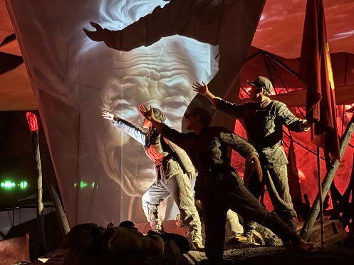 在砥砺征途展区中,团队成员们通过沉浸式的展演,切身体会到了红军战士在恶劣的自然环境中奋斗的艰辛,聆听了发生在长征路上的感人故事。