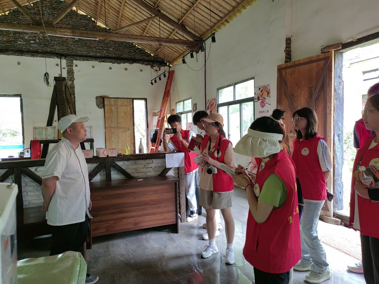 首先,吴芊芊带领队员们前往金刺梨加工车间,由车间负责人为队员们进行讲解。2022年以来,安顺经开区将“安顺独有、全国唯一”的金刺梨确立为区域重点特色优势产业,全力推动金刺梨的种植与深加工产业发展。2万亩金刺梨由当地的村民进行种植、除草、采摘,此举给村民生活带来一定的保障及带动当地的经济效益,为乡村振兴战略的深入实施注入了强大的内生动力。