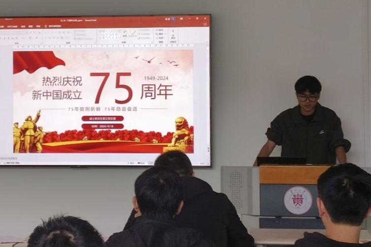 博士研究生第一党支部、博士研究生第二党支部和硕士研究生第三党支部联合开展了“我与祖国同成长”主题党日活动。硕士研究生第三党支部副书记陈浩作为本次主题党日活动的主持人发表了热情洋溢的讲话,他表示作为研究生党员,要时刻牢记自己的身份和使命,不断提高自身素质,为祖国的发展贡献自己的力量。博士研究生第一党支部的王云胜同志通过PPT的形式向大家分享了自己的所见所想:“中华人民共和国成立75周年,一路波澜壮阔。这 75 年见证了中国从一穷二白到繁荣昌盛的伟大飞跃。在新时代,我们应传承先辈的奋斗精神,勇于创新,敢于担当,续写更加辉煌的篇章。”博士研究生第二党支部的朱楚天同志也通过自己小时候的经历,从自己的专业角度,向大家分享了中华人民共和国成立75周年以来,我们国家的巨大变化,他表示:“中华人民共和国成立75周年,国家在抗击灾害方面变化巨大。从技术上,拥有先进的监测预警系统,能更早地发现灾害隐患。救援力量不断壮大,专业队伍与民间力量协同作战。应急机制更加完善,能迅速响应和高效处置。同时,公众的防灾意识也显著提高。国家以强大的实力和担当,在灾害面前为人民筑起坚固防线,守护着国家和人民的安全。”