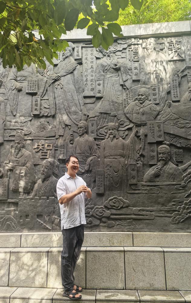 图书馆党总支书记周长峰担任主讲解员,沿着孔学堂经典线路,从大成殿讲到百廉图,以典籍史料串联建筑、典故与孔子生平等,通过拆解御匾上的题字寓意、雕塑中的细节符号、汉字的起源演变等,让静态的文化场景“活”了起来。在廉洁文化长廊里,他结合中华传统文化中的廉洁基因,带领大家回顾了党的十八大以来贯彻落实中央八项规定精神的生动实践,让在场师生深刻感受到“廉洁”既是千年传承的文化底色,更是新时代党员干部的行动准则。