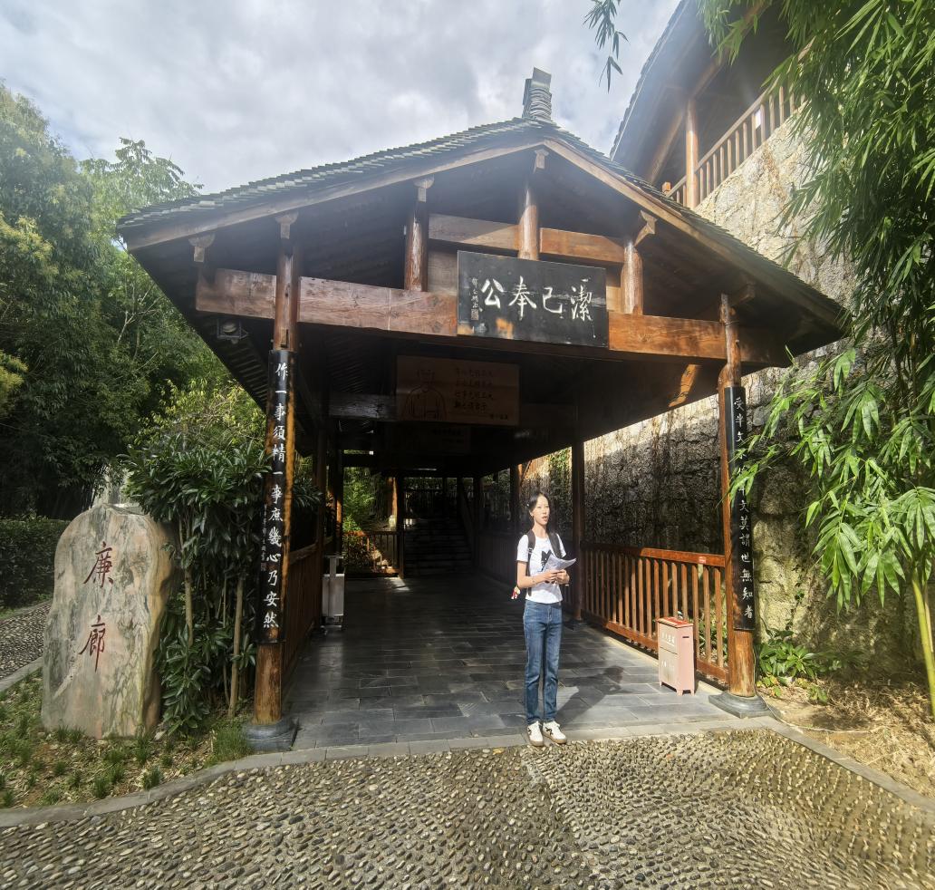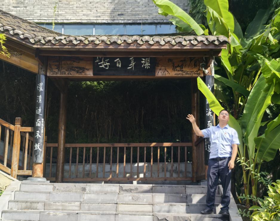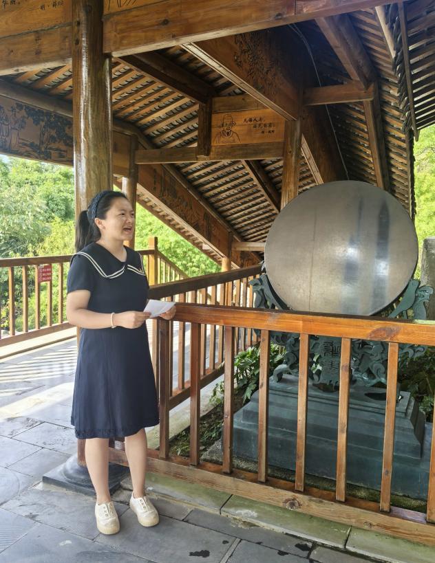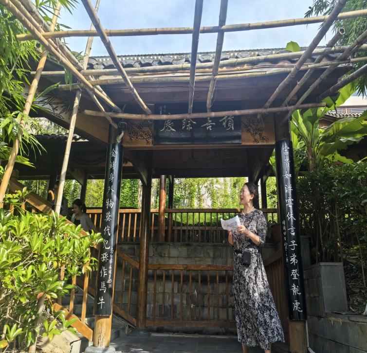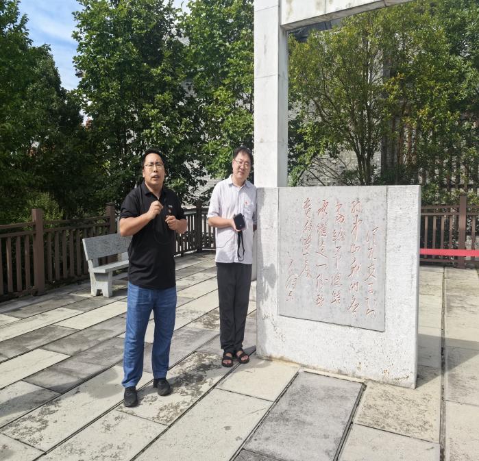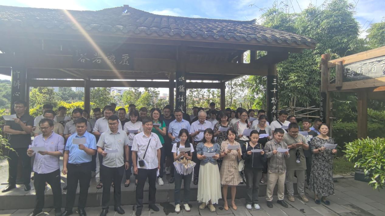 为了呼应第28届全国推广普通话宣传周“推广普及国家通用语言文字,助力乡村振兴和铸牢中华民族共同体意识”的主题,活动在“洁身自好亭”与“虚怀若谷亭”前特设诵读环节。全体党员集体诵读周敦颐《爱莲说》、岳飞《满江红·写怀》。“出淤泥而不染,濯清涟而不妖”的清雅之语,“莫等闲,白了少年头,空悲切”的壮志之声,与亭榭环绕的荷塘景致交相辉映,既展现了国家通用语言文字的魅力,更将廉洁情怀与爱国壮志推向了高潮,让精神共鸣在诵读声中久久回荡。